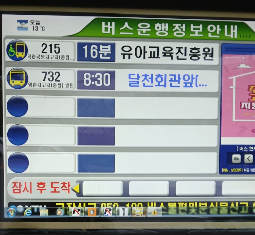 오늘도 732를 놓쳤는데 8시 반에 종점에서 출발하는 식이었고,