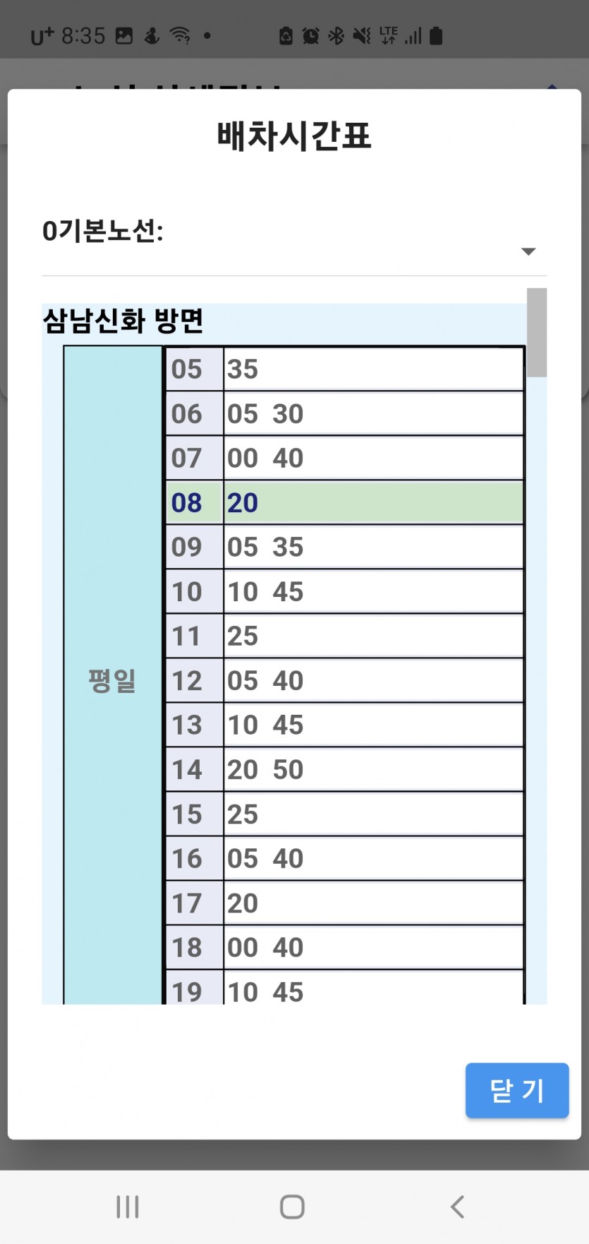 첨부 파일은 현재 어플에 올려져있는 평일 오전 버스 시간표와