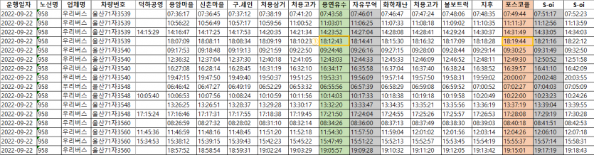 작성하신 9/22 해당 날짜의 운행기록을 살펴본 결과, 해당 958노선이 18:01경 지나갔음을 확인하였습니다.
