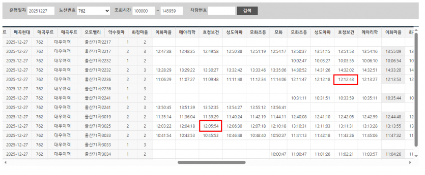 1/2(금) 12:00 까지 운행방향 혹은 첨부드린 운행기록상의 차량번호를 새로운 게시글로 다시 작성해 주시면 해당 운행회사로 민원 전달하도록 하겠습니다.