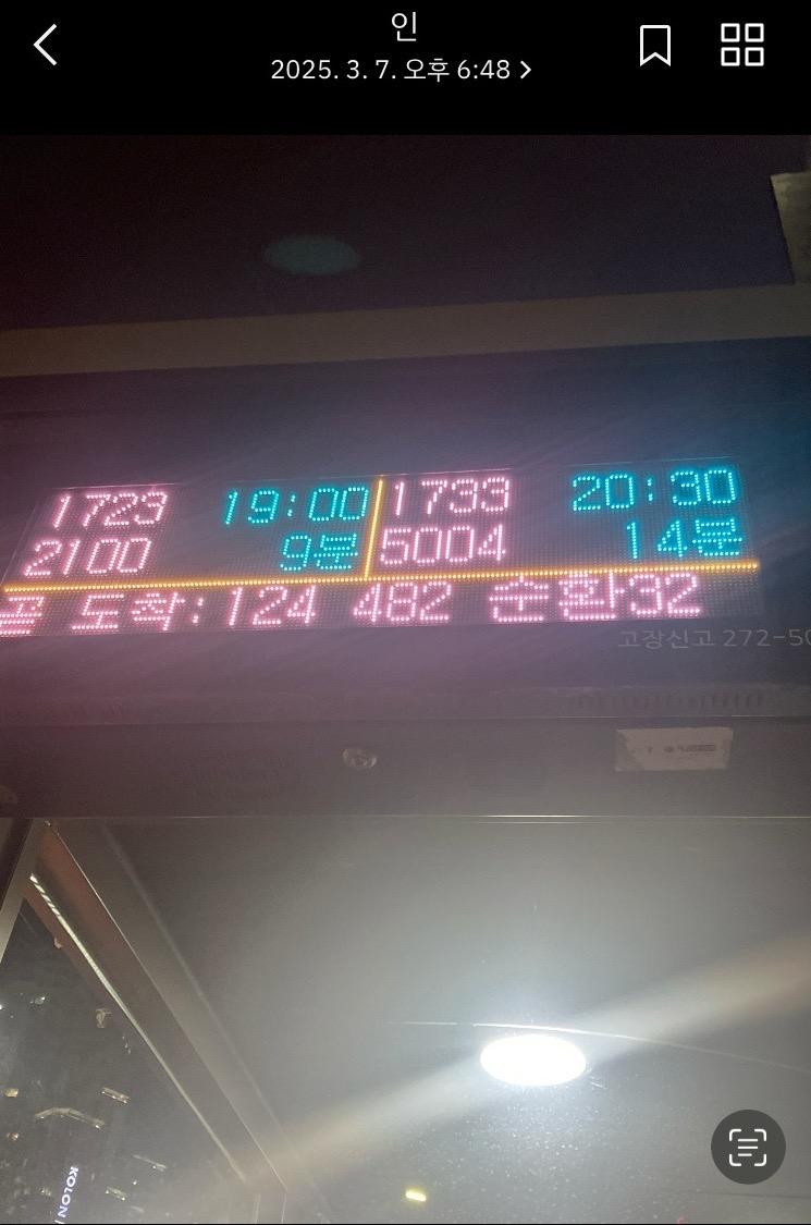 버스정류장 내 도착정보에도 그다음 시간 출발시간만 뜨더군요(사진 첨부)