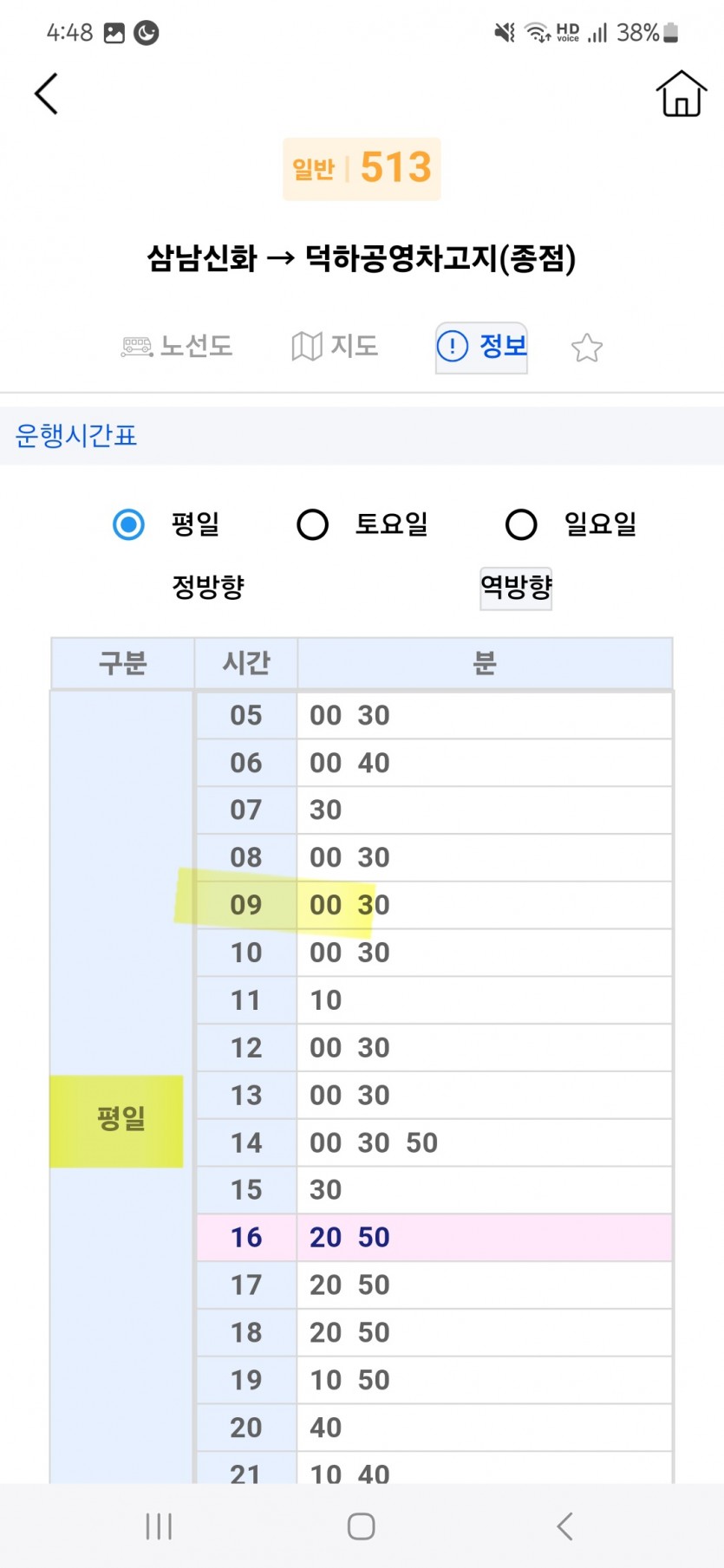 513번이 평일 아침 배차시간 6시/ 6시40분/ 7시30분/ 8시/ 8시30분 이렇게 있네요. 출근이나 등교시간에 배차시간이 너무 긴것 같습니다