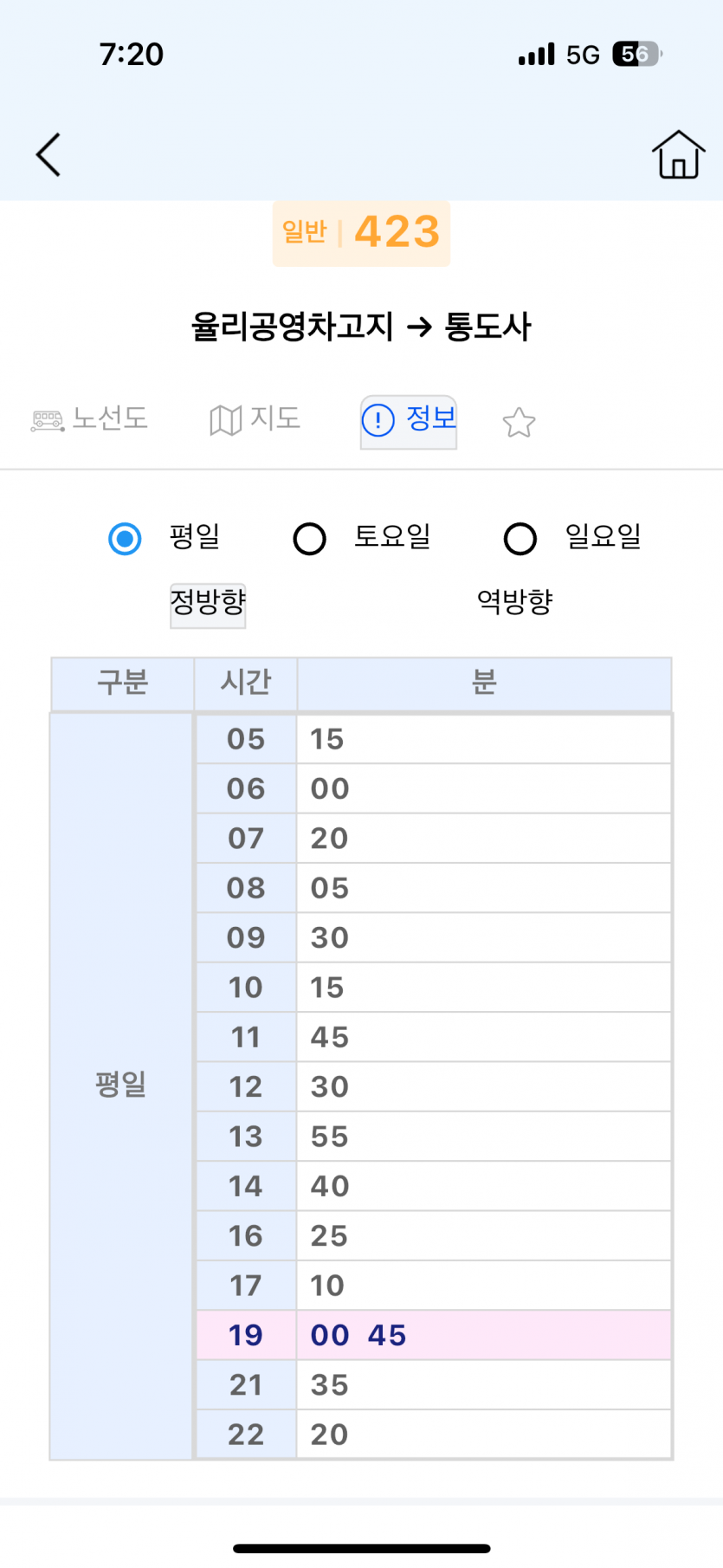 불편 423버스 시간표는 알려진 것과 다릅니까?