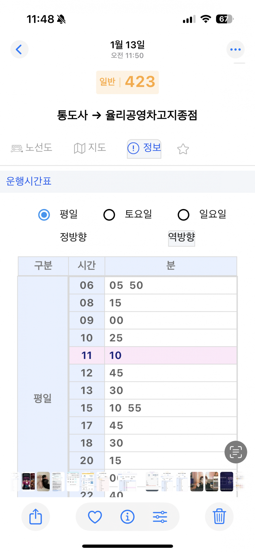 사진 3,4 - 25.01.13 11시 10분 버스 (역방향) 출발 안 함
