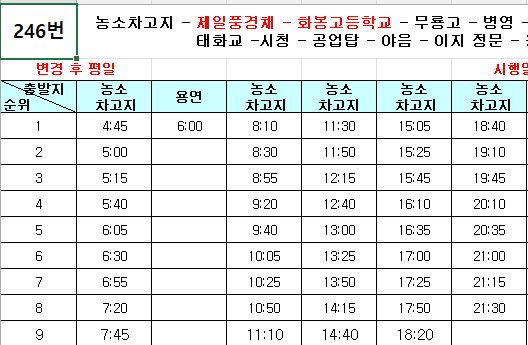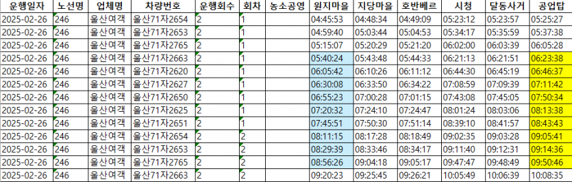 운행기록과 운행시간표 첨부해 드리오니 참고하시기 바랍니다.