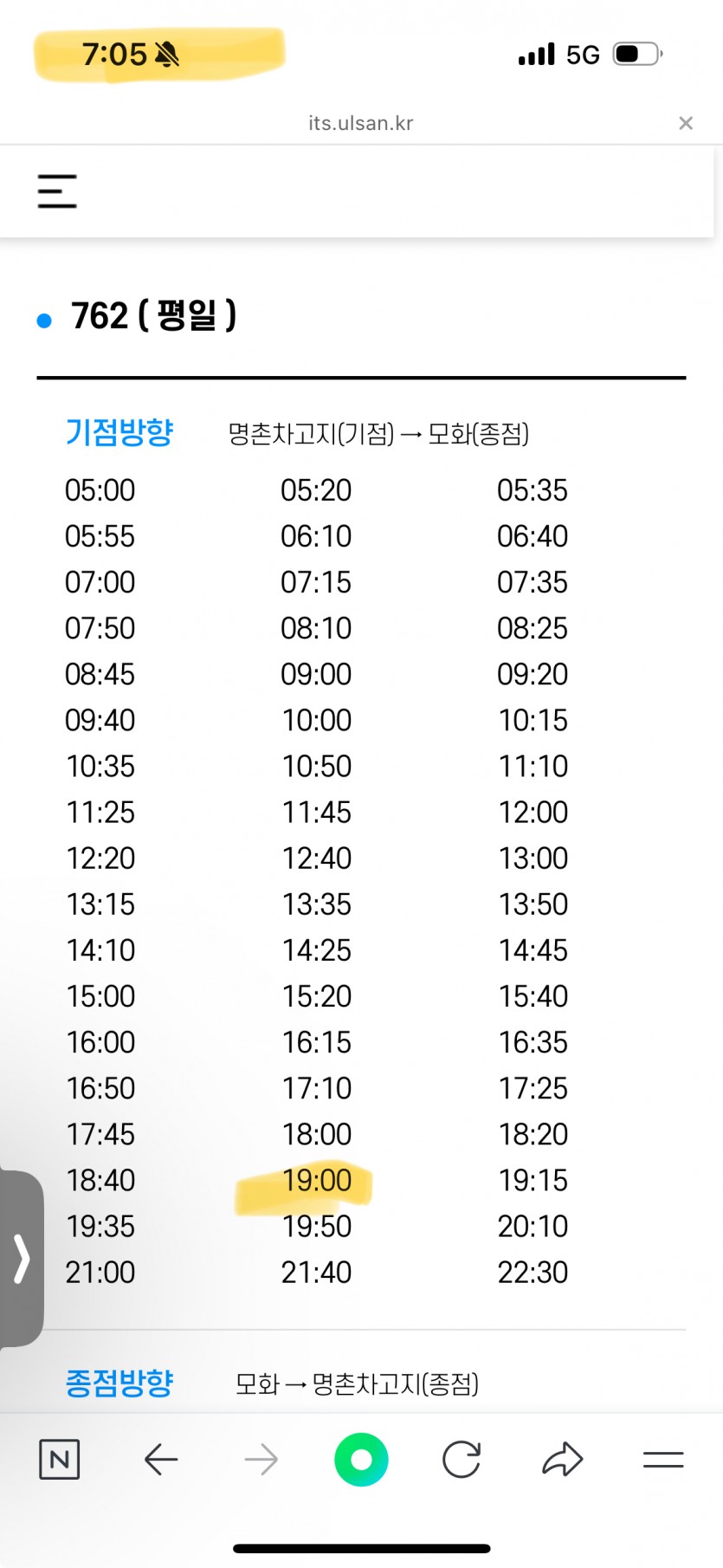 불편 명촌출발 762 / 18:40 이후 19:00출발도 안함 ^^/명촌출발 19:15분도 안함 ^^ 내 시간 돌려내요