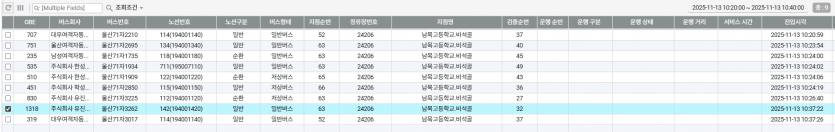 작성하신 내용에 운행방향이 없어 양방향 운행기록을 조회해 본 결과