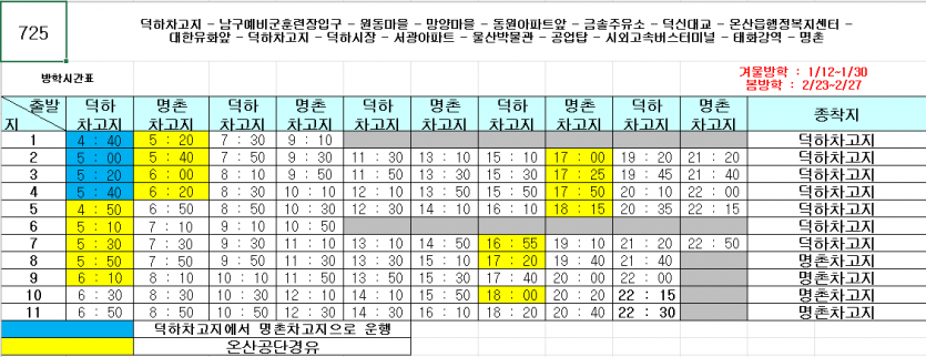 1/12~30 , 2/23~27 동안 동계방학(학년말방학) 시간표로 운행되오니 참고하시기 바랍니다.
