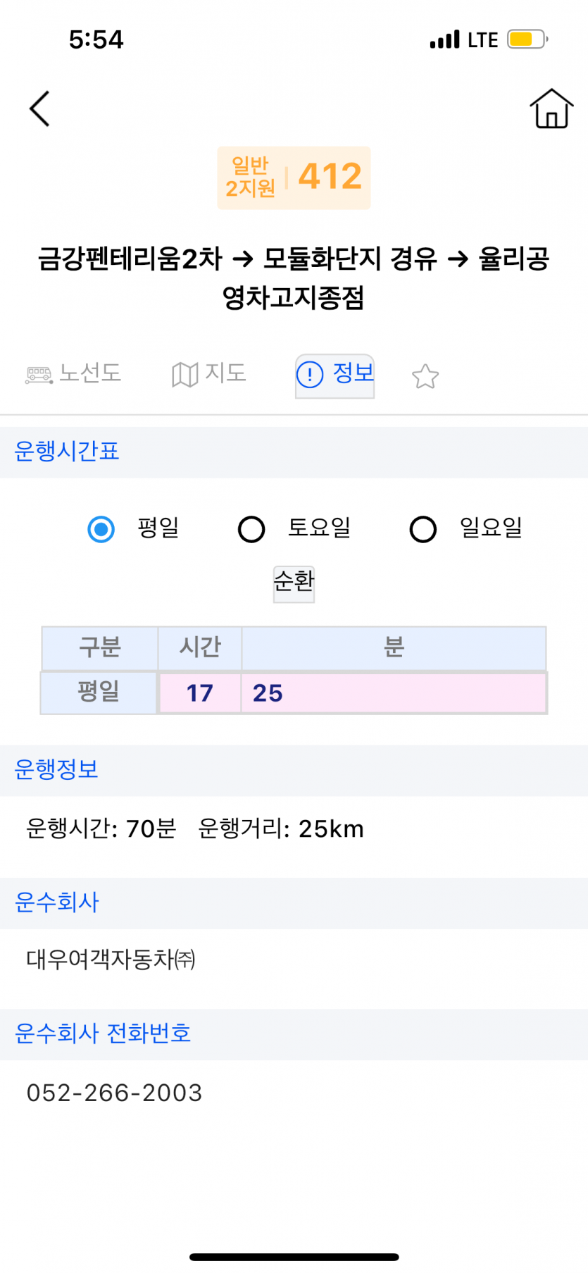 412번 지원2 17:25 출발