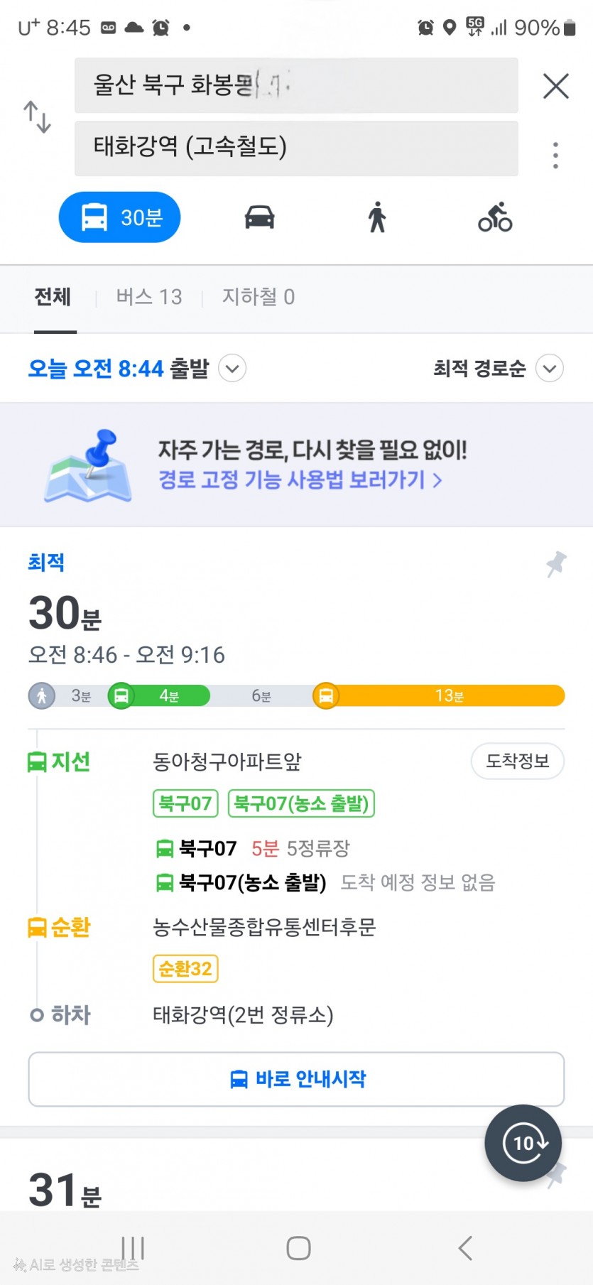 불편 북구 화봉에서 태화강역까지 3번갈아타는게 말이되나요