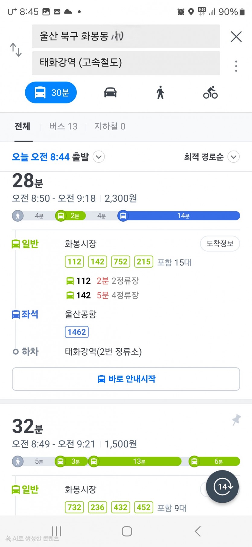 북구 화봉동에서 태화강역까지 항상 직행만 타왔는데