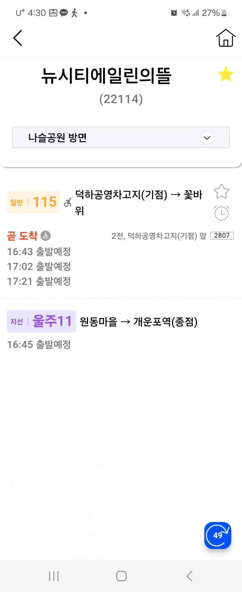불편 1월2일 4시 25분출발예정 115번버스 운행 안함