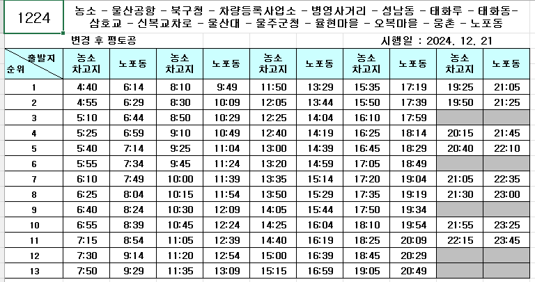 운행시간표를 첨부드리오니, 참고하시기 바랍니다.