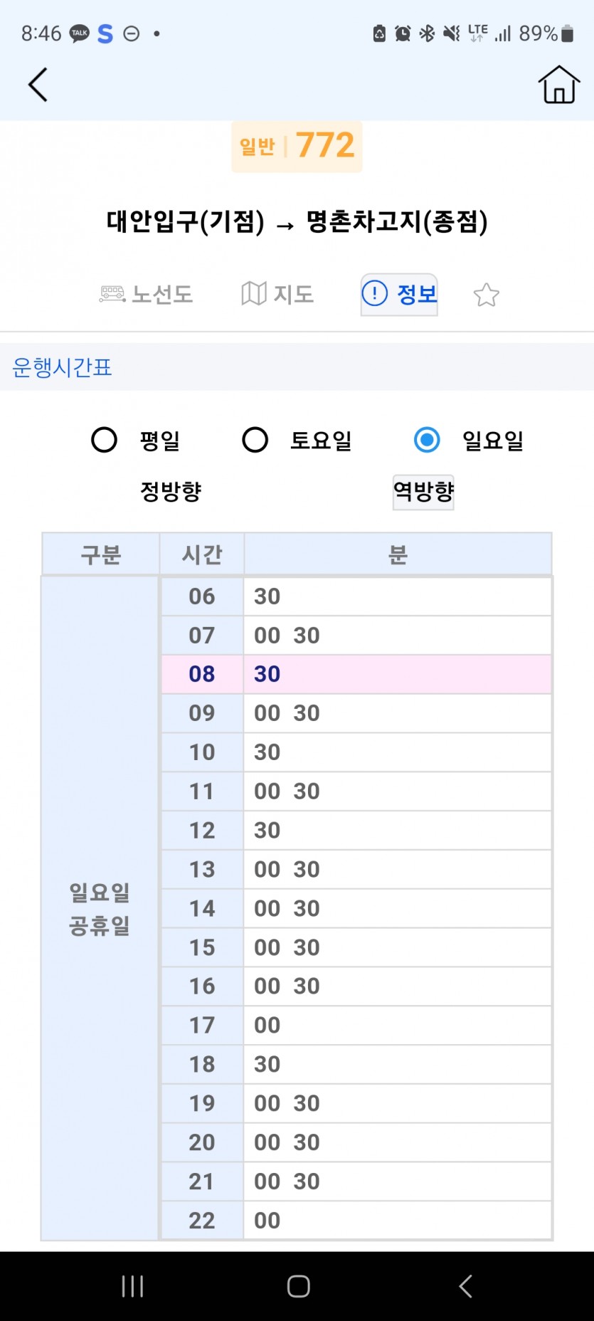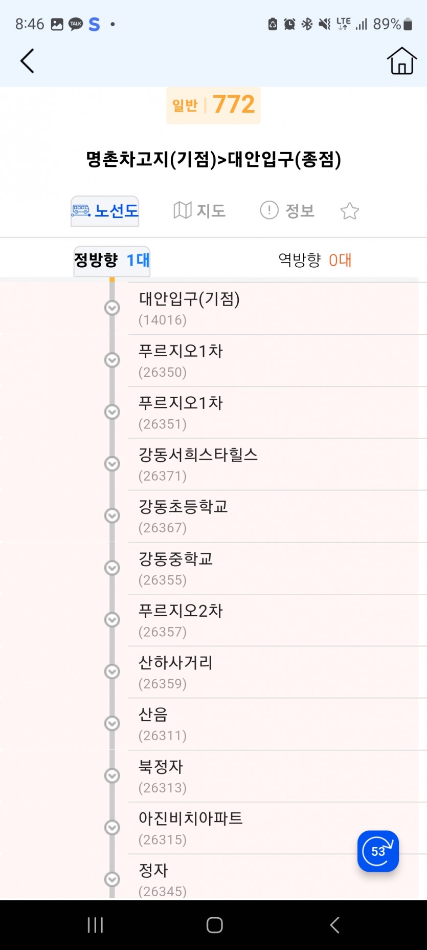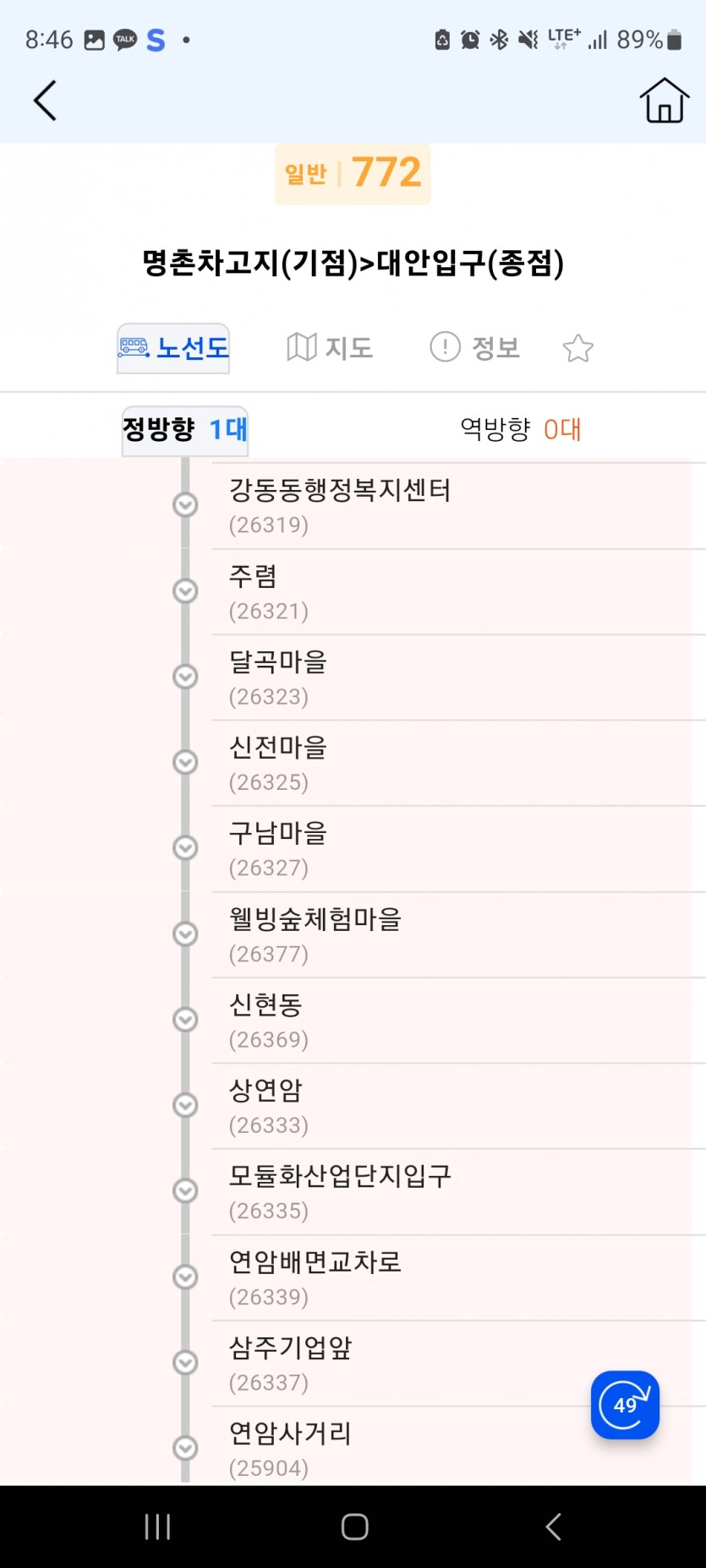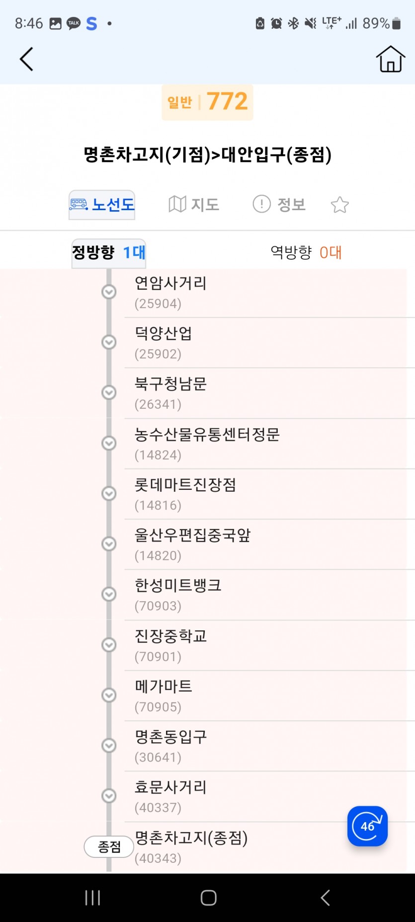 2. 불편 노선 : 772 (대안입구 출발->명촌차고지 도착)