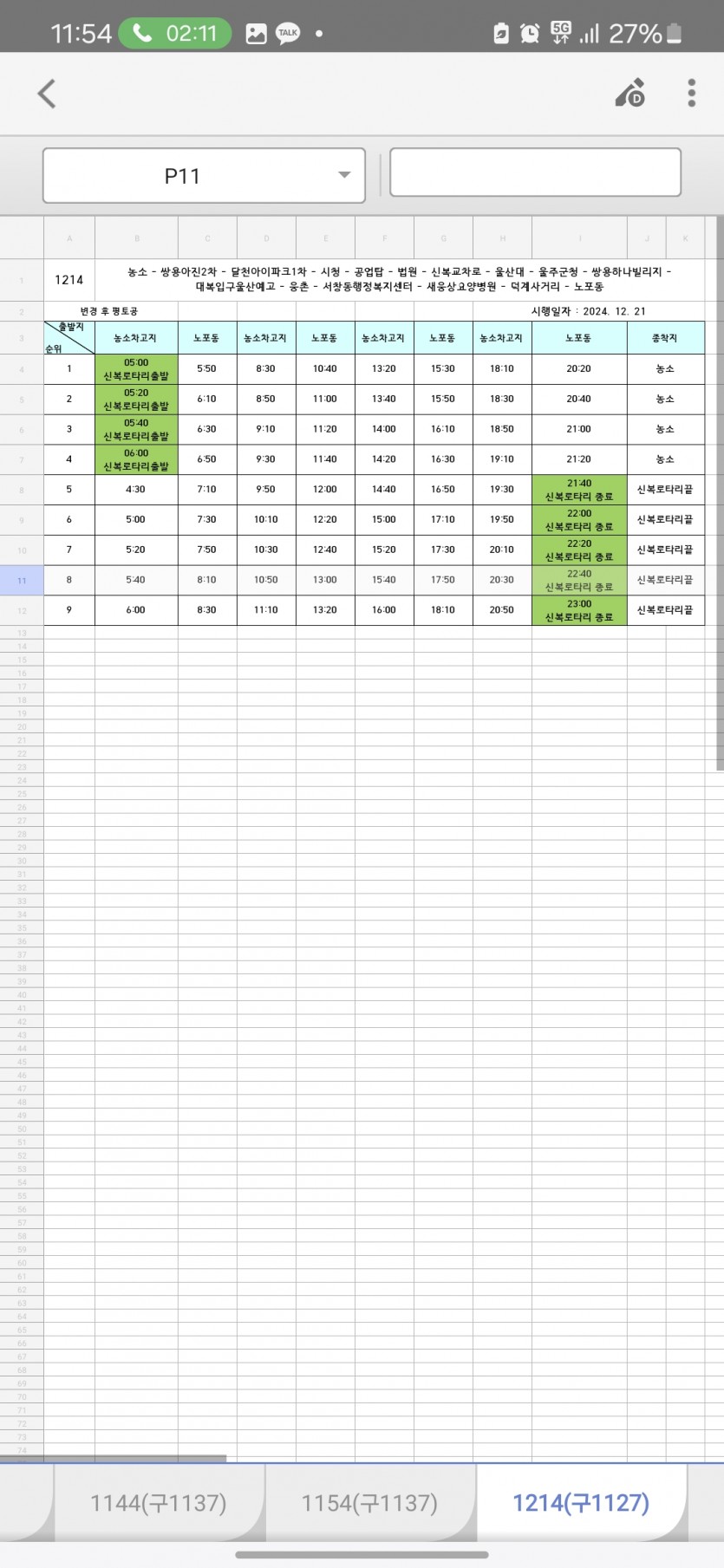 1214번 오후 9시 40분에 노포에서 출발한차가 지금까지도 운행하고 있는게 말이 안되는데 배차시간은 지키고 있는건지 모르겠네요 확인 부탁드립니다