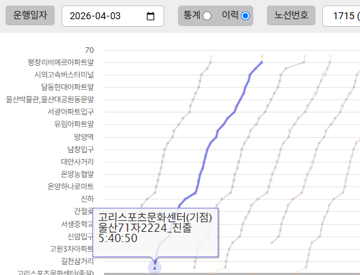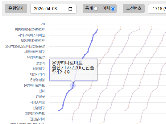 다른 날짜의 운행기록을 확인해 보았을때도 비슷하게 지나간 것으로 확인됩니다.