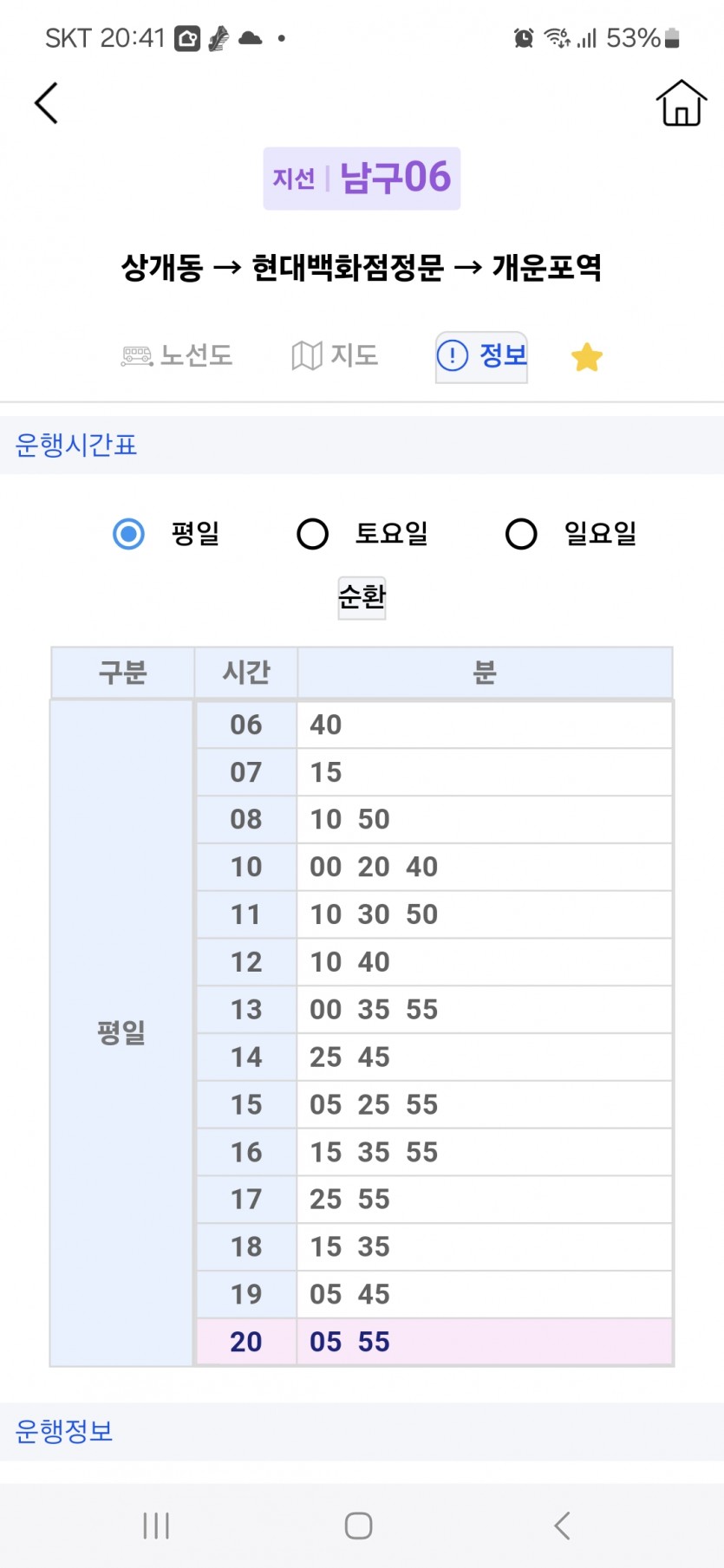 불편 남구 06번 버스 배차 시간 조정