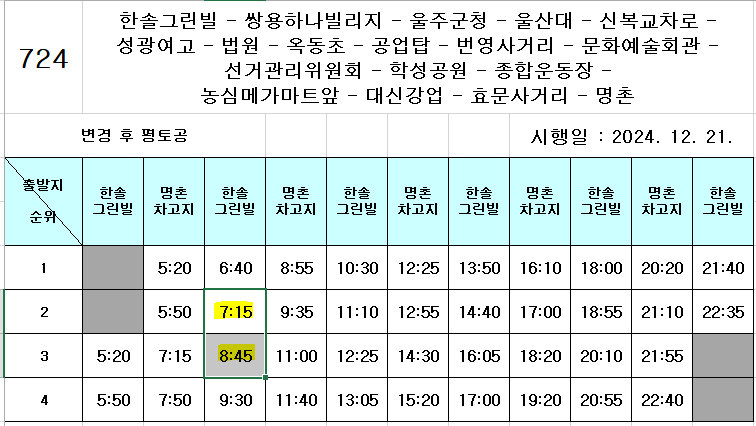 개편버스 724(구472) 버스 시간표 나와서 확인했는데