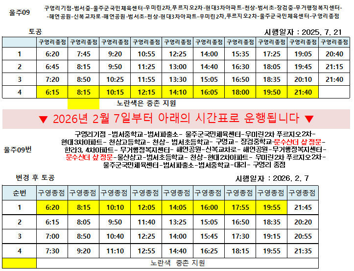 - 다음글2026년 2월 7일부터 울주09번 운행 경로가 변경됩니다. 26.01.30
