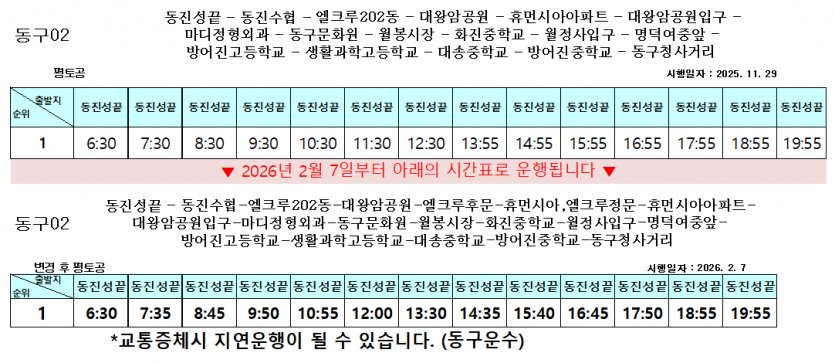 시간변경 2026년 2월 7일부터 318번, 918번, 동구02번, 울주09번 운행 시간이 변경됩니다.