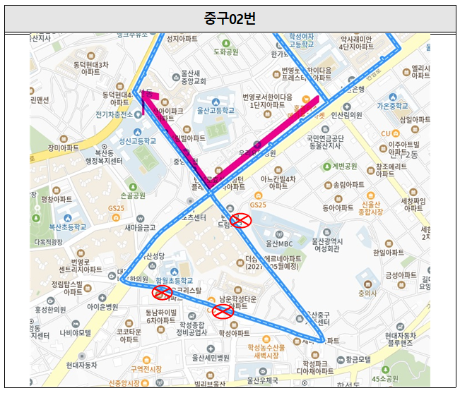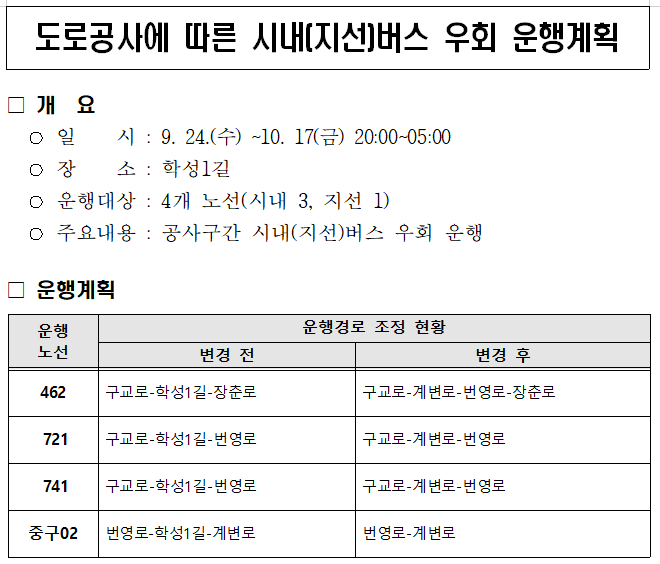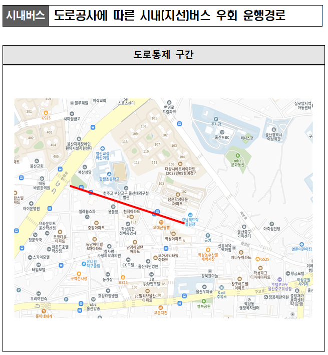 알림 2025년 9월 24일부터 학성1길 공사로 시내버스 운행 경로가 변경됩니다.