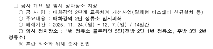 알림 2025년 11월 24일 ~ 12월 7일 동안 공사로 인해 태화강역 2번 정류소 정차 위치가 임시로 변경됩니다.