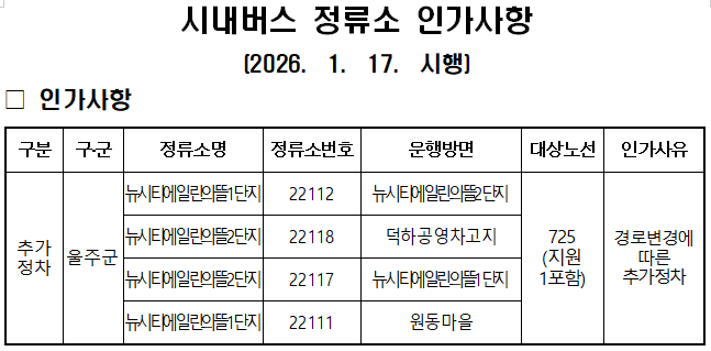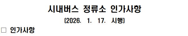 노선변경,신설,폐지 2026년 1월 17일부터 318번, 514번, 518번, 725번 운행 경로가 변경됩니다. 페이지 정보 작성자 최고관리자 (114.♡.215.204) 조회Hit 554회 작성일Date 26-01-07 10:38 본문 목록 이전글2026년 1월 17일부터 134번, 318번, 416번, 713번, 918번, 1134번 운행 시간이 변경됩니다. 26.01.07 다음글2026년 1월 12일부터 744번, 1452번 운행 시간이 변경됩니다. 26.01.07
