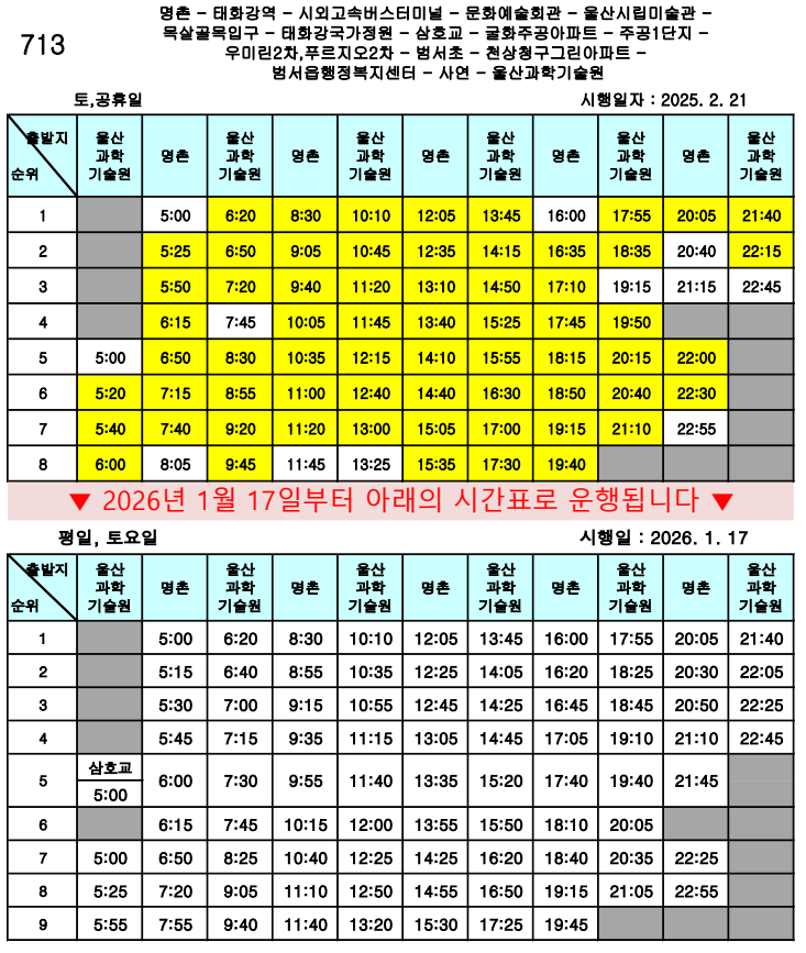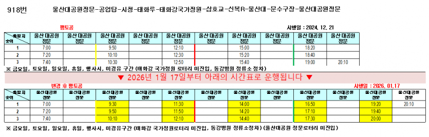 - 이전글2026년 1월 13일 울주13번이 차량 검사로 운행시간이 변경됩니다. 26.01.07
