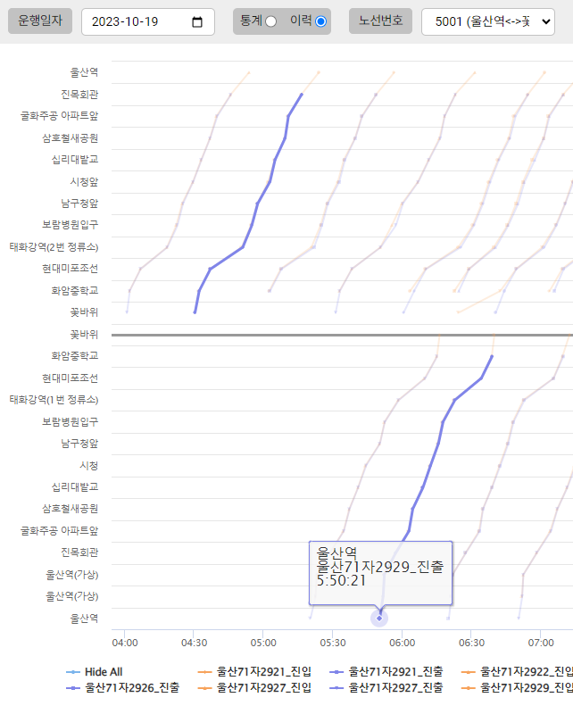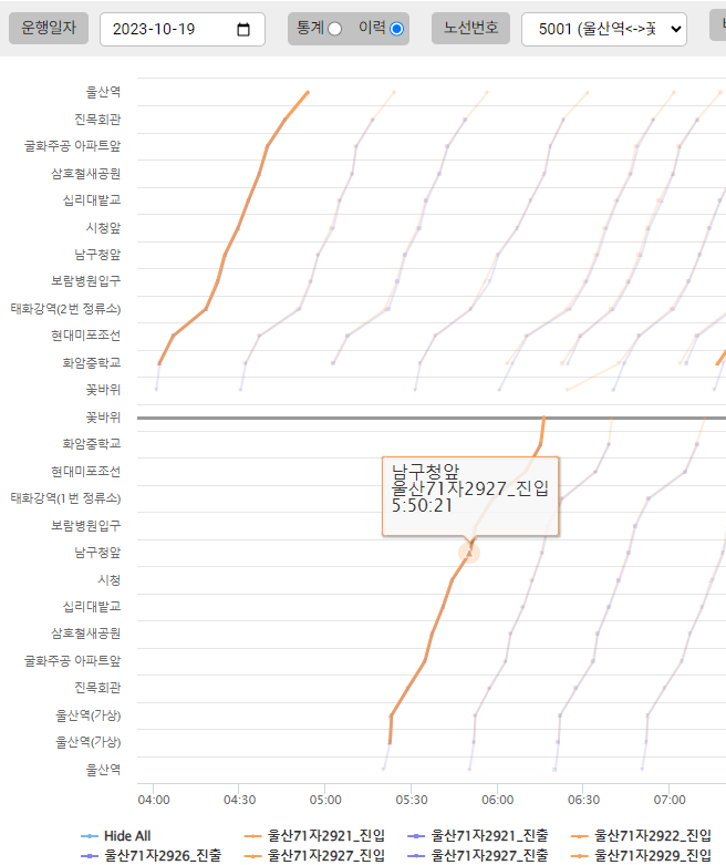 우선, 운행기록을 조회하였을 때는 05:20 울산역 출발 차량 2927호(05:50경 남구청앞 통과)가 유력합니다만, 05:50 울산역 출발 차량 2929호라면