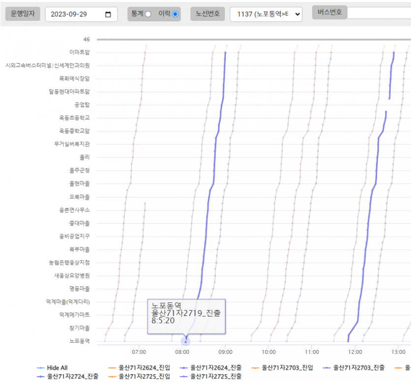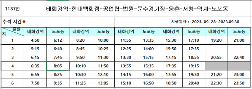 작성하신 내용으로 운행기록과 시간표 대조해 본 결과, 추석 시간표대로 운행한 사실을 확인하였습니다.