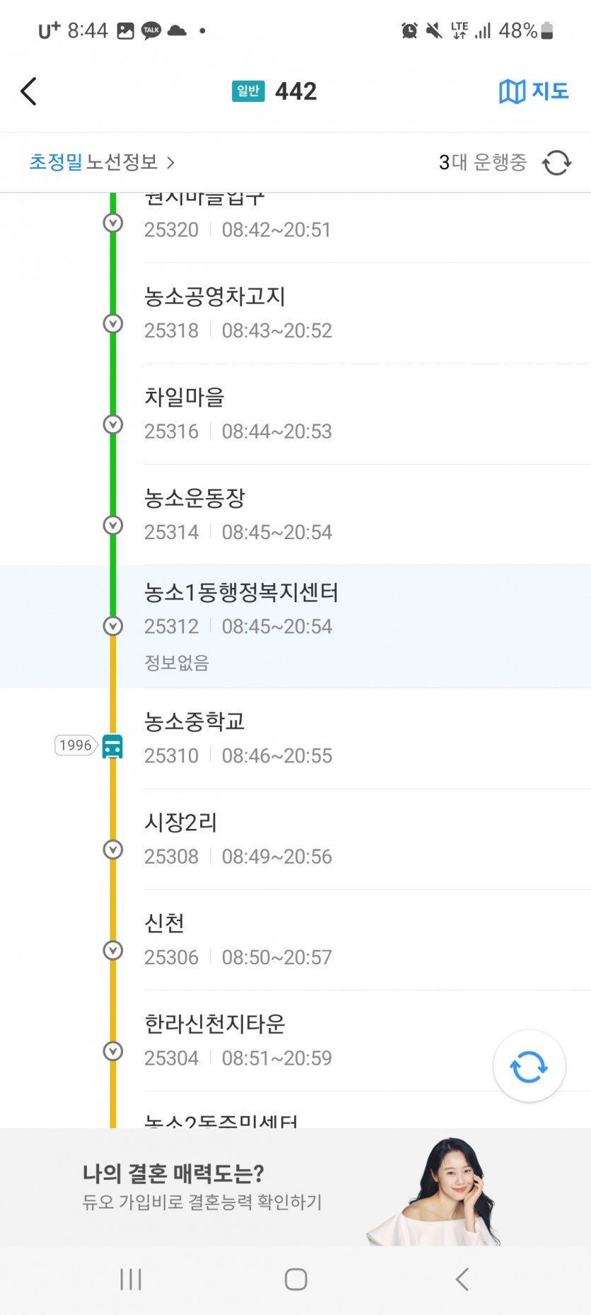 북울산전화국에서 농소차고지 방향 442버스(카카오맵 버스 추적 번호 1996)를 타려고 기다리고 있는데 정류장이 있음에도 2차선 주행이 아닌 1차선 주행으로 추정 시속 50~80km로 달려서 정류장에 사람이 있음에도 그냥 지나쳐갔습니다. 제가 서있음을 기사가 인지한걸로 보입니다.(시선을 마주침)