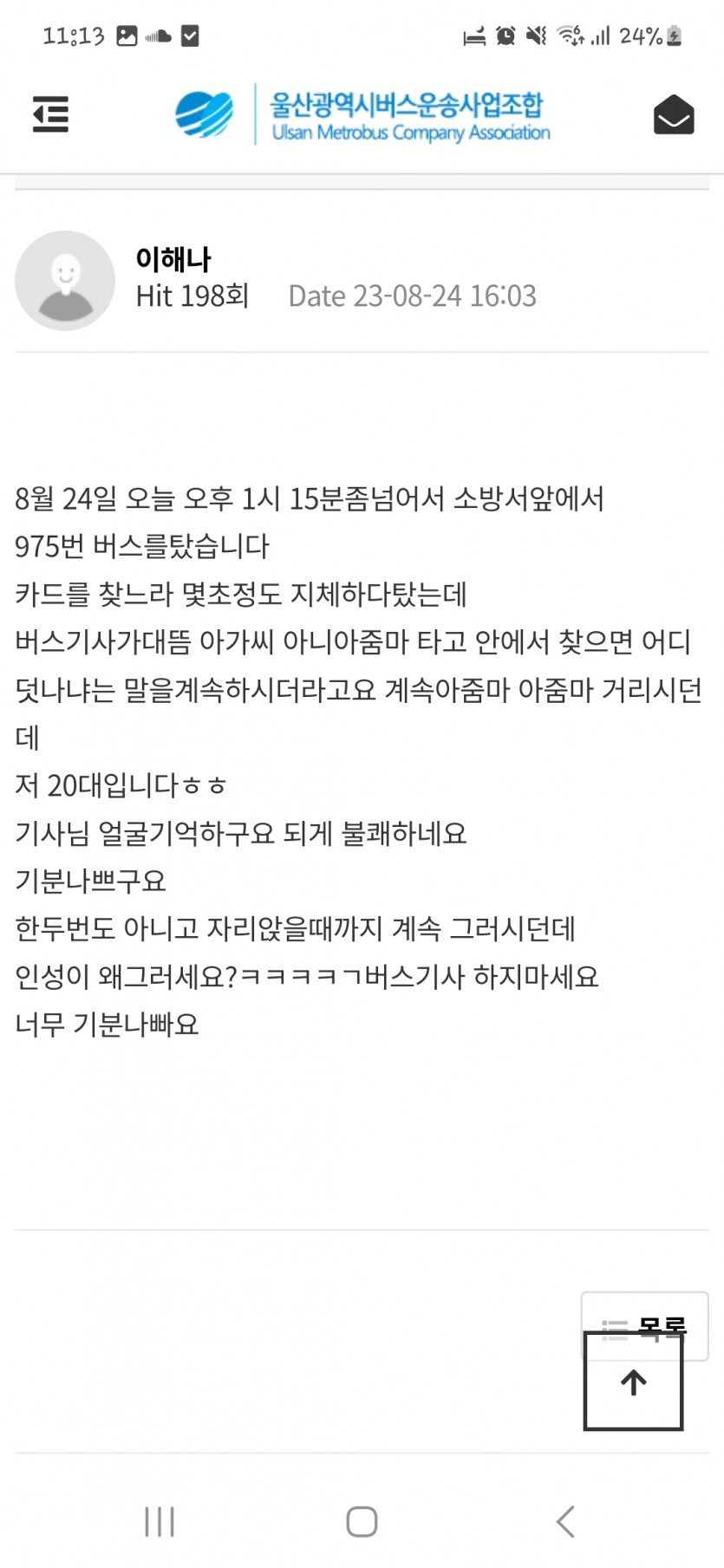 - 이전글Re: 337번 버스기사 안전운행 해주세요 23.09.05