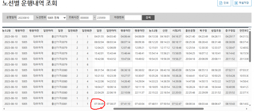 또한, 07:20 출발해야 했던 차량은 시동 고장으로 인해 3081호 차량을 대차하여 07:36에 달천회관에서 출발하였음을 알려드립니다.