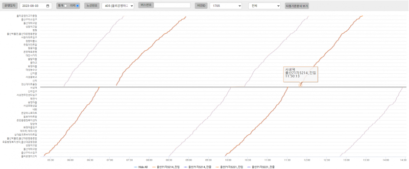 첨부한 사진은 승객들께서 보시는 어플 및 정류장 도착정보단말기와 연동되는 전산입니다.