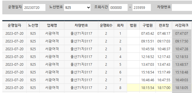 자세한 사항을 서광여객에 유선 문의 결과, 해당 차량이 늦게 도착하여 급하게 다른 차량을 먼저 늦은 시간에라도 출발시킨 상황을 확인하였습니다.