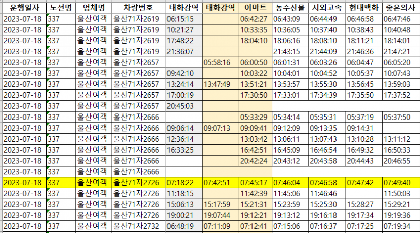 불편 Re: 7/18, 7:40 출발 태화강역발 삼남신화행 337번 버스 증발