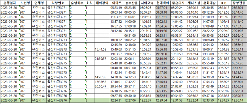 해당 운행기록 첨부하오니 참고하시기 바랍니다.