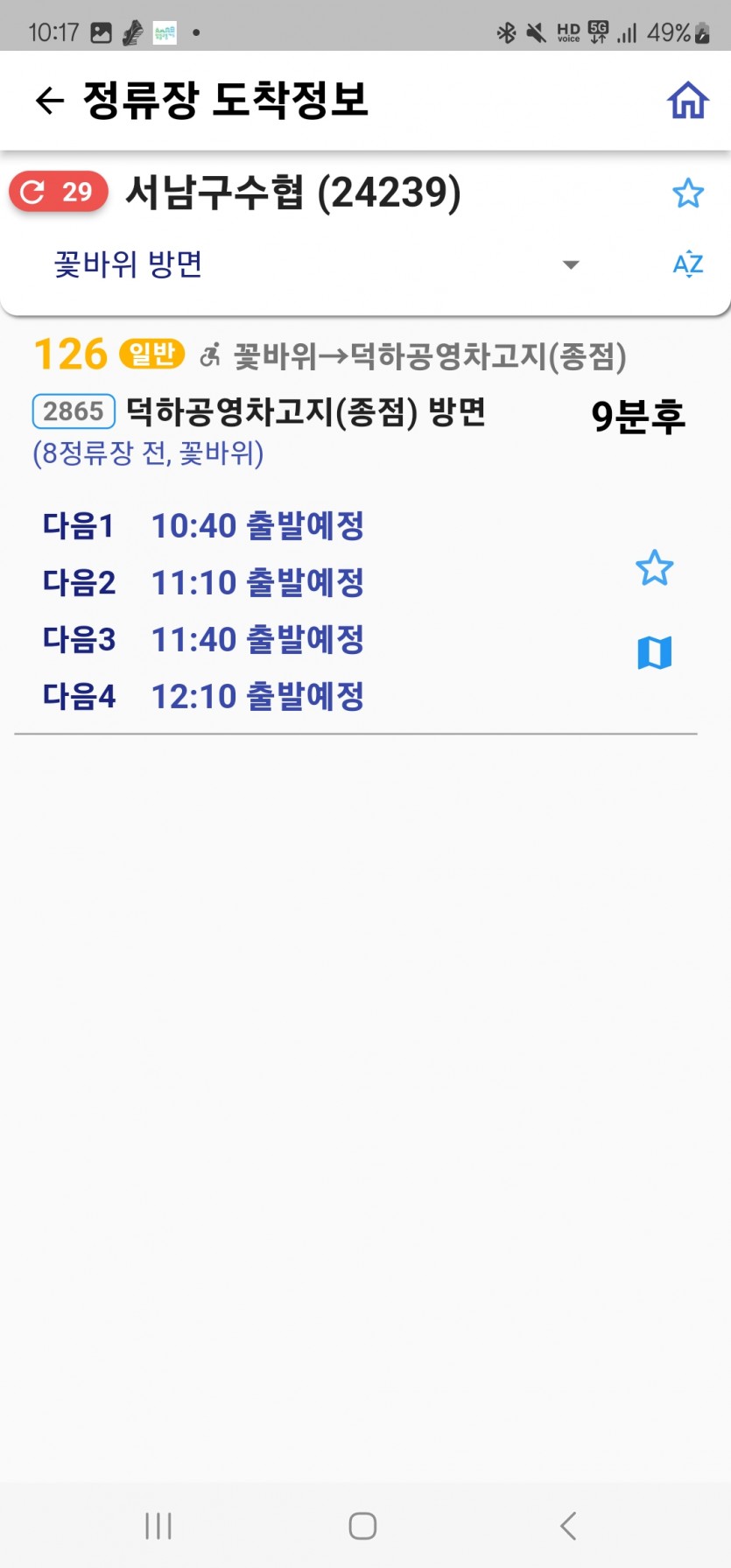 3. 버스어플 상 10시 17분 당시 몇분남았는지
