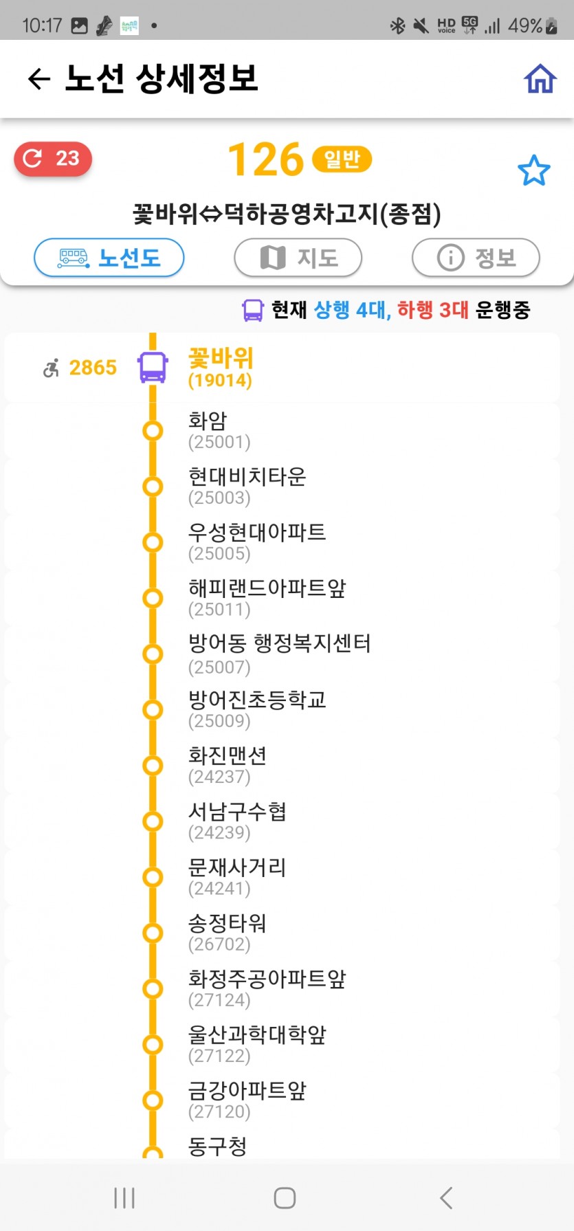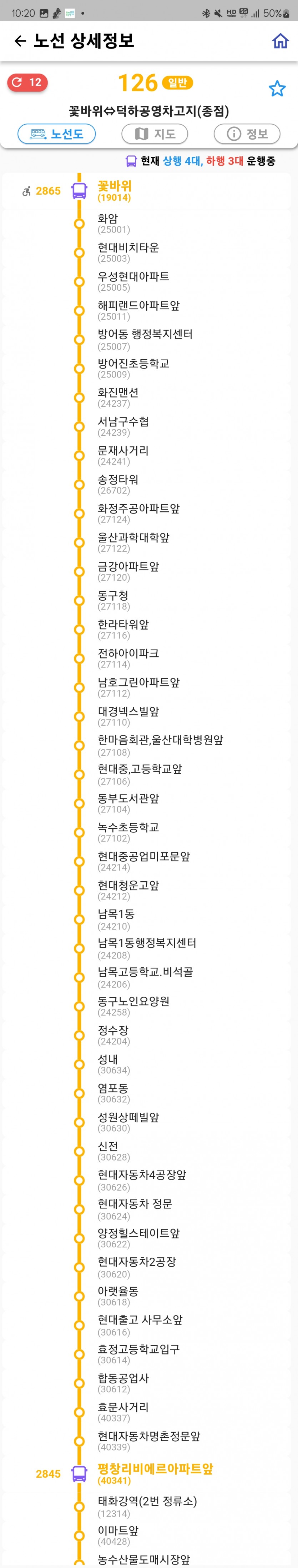 5. 버스어플 상 10시 20분 당시 126번 버스 위치