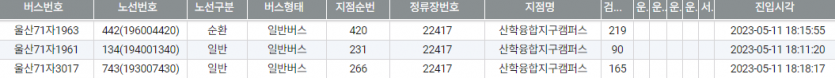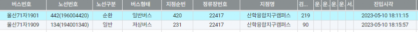 안녕하세요. 김심윤님. 울산버스운송사업조합 고객의견 게시판 담당자입니다.