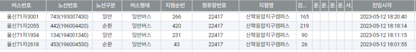 다만, 율리 및 울산대학교 쪽으로 운행하는 버스는 차량이 여의치 않은 것을 확인하여 운수회사에 증차 의견 전달하였습니다.