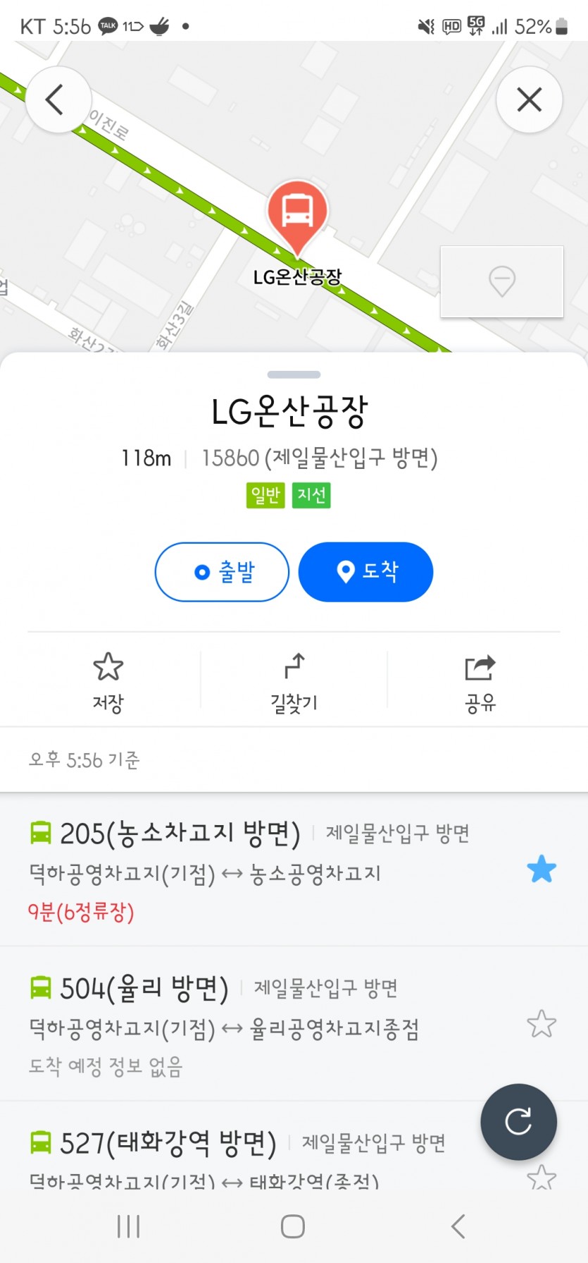 한달전만해도 LG온산공장 입구앞에 205번은 17시 35분에 도착하는 노선이었으나 시간이 단축된것인지 잘모르겠으나