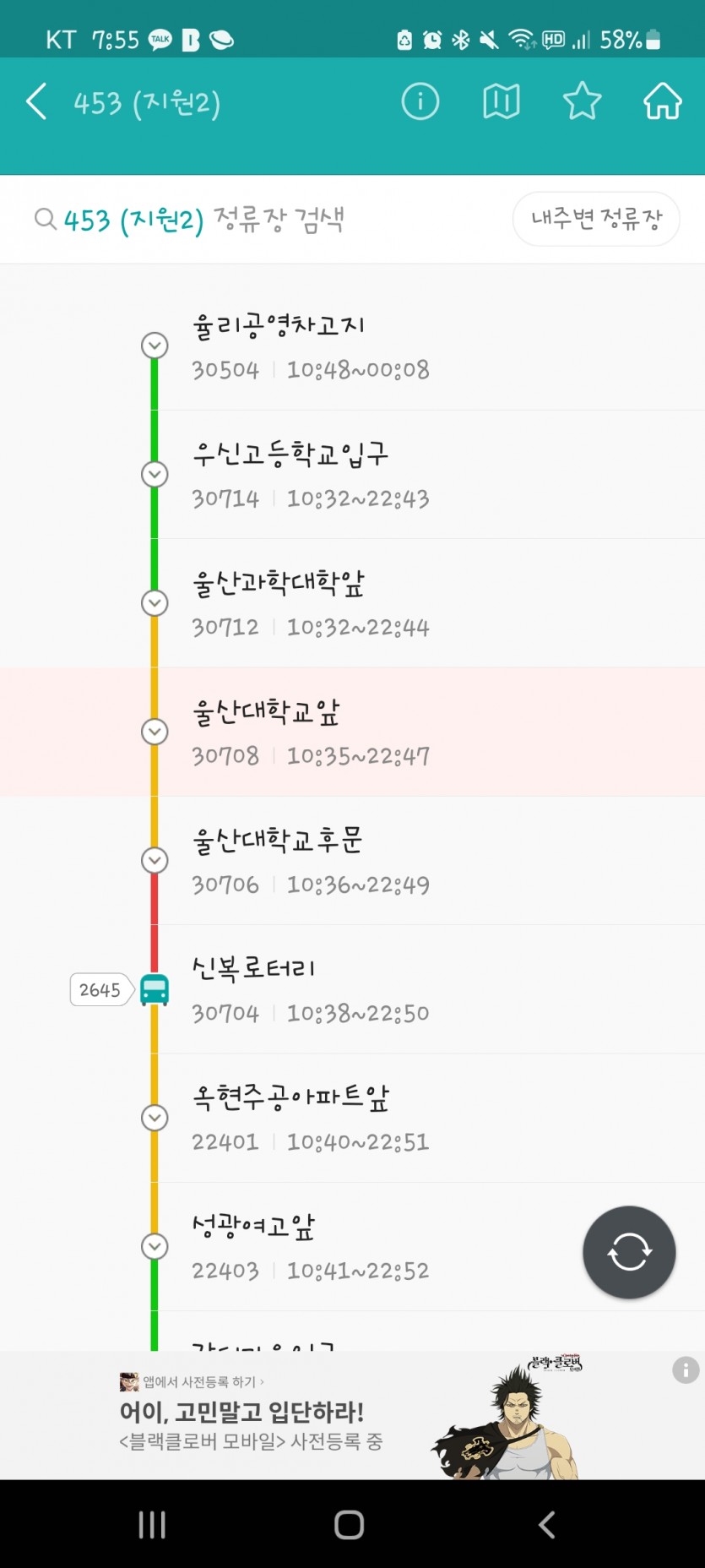 저는 몇달째 울산대학교 앞에서 동일한 시간대의 버스를 타고 있습니다. 그런데 버스 시간이 변경된 이후부터 19:30분 종점 출발인 버스가 어떤날은 제대로 왔다가 어떤날은 없다가 중구난방으로 운행되고 있습니다.