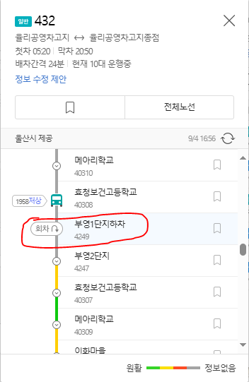 추가로 설명드리자면 원래 운행하는 노선 자체가 1단지에서 2단지 유턴하는 경로입니다만,
