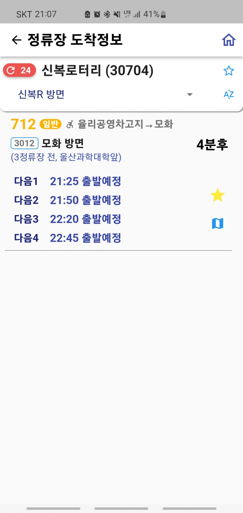 불편 712번 오후8시 율리차고지 출발 3012기사