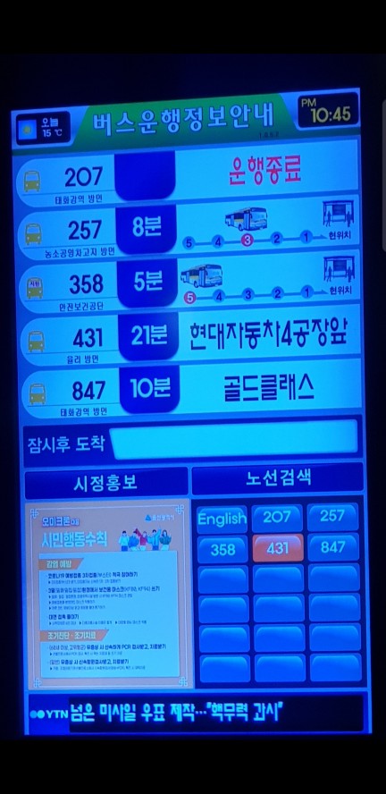 버스는 10분뒤 5분뒤 도착한다고 해놓고 안와버리기 이거좀 고쳤으면좋겠어요