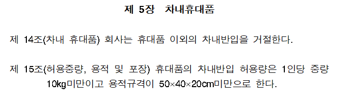해당 규격은 1인당 중량 10kg미만이고 용적규격이 50×40×20cm미만입니다.