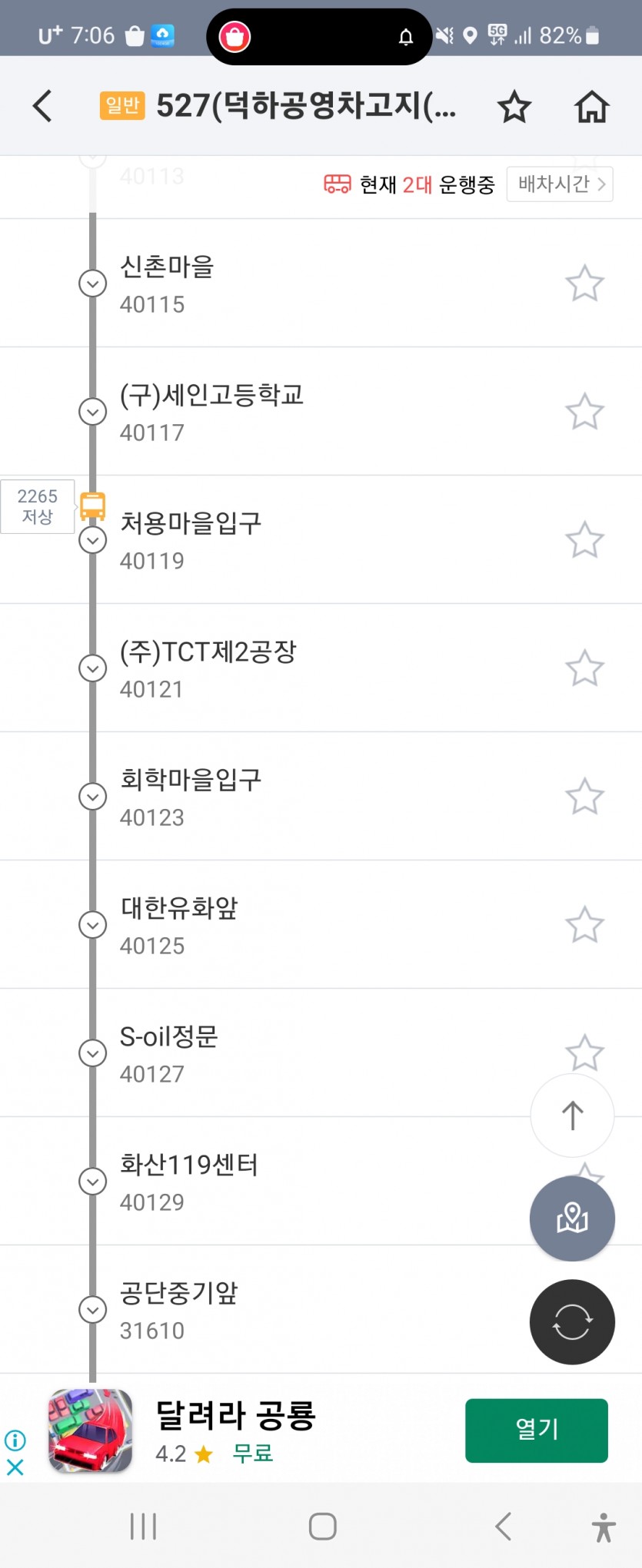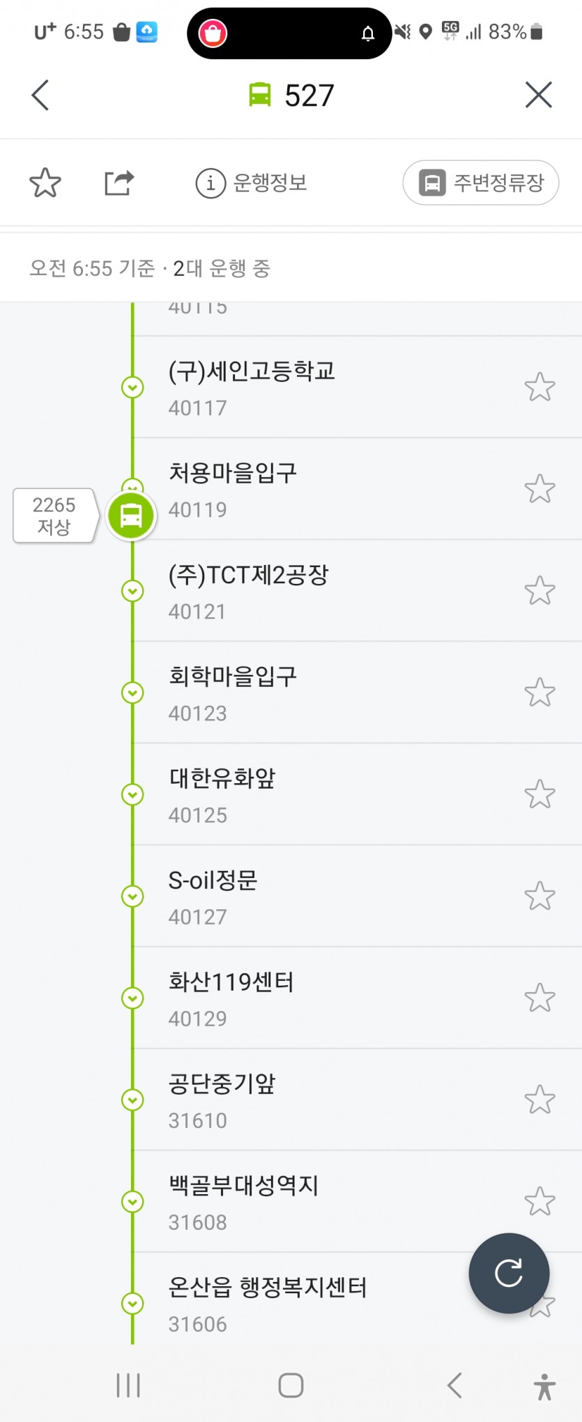 저는 6시10분 공단미경유 527번 2265호차량을 탑승하였는데