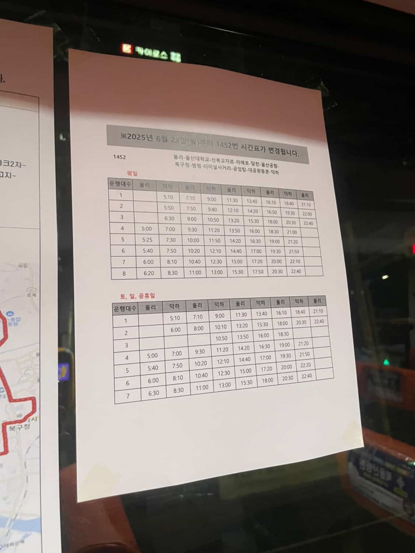 배차시간 좀 잘 지켜주셨으면 좋겠고 전광판을 보면 유독 1452번 버스만 대기시간이 나오지 않고 차고지출발예정 표시만 뜨던데 조치 해주시면 감사하겠습니다.