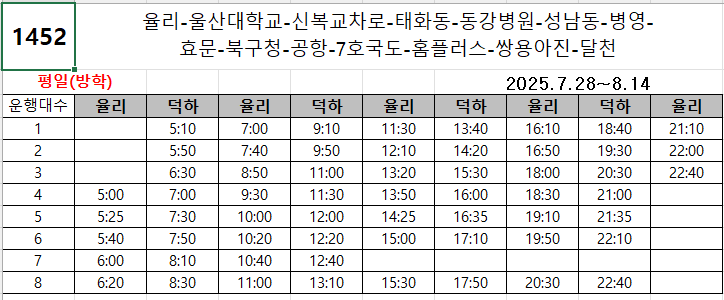 7/28~8/14 동안 하계방학 시간표로 운행되고 있습니다.